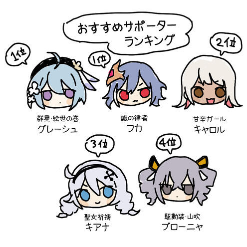色々書きましたが、あくまで性能面だけを見た場合の話なので好きなキャラが来たら迷わず引きましょう!!