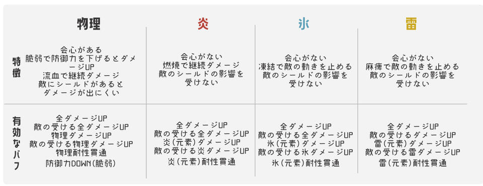 物理属性の攻撃はシールドがあるとダメージが下がってしまうので、それを早く割れるのが強いです(ただしSランク以上にする必要あり)